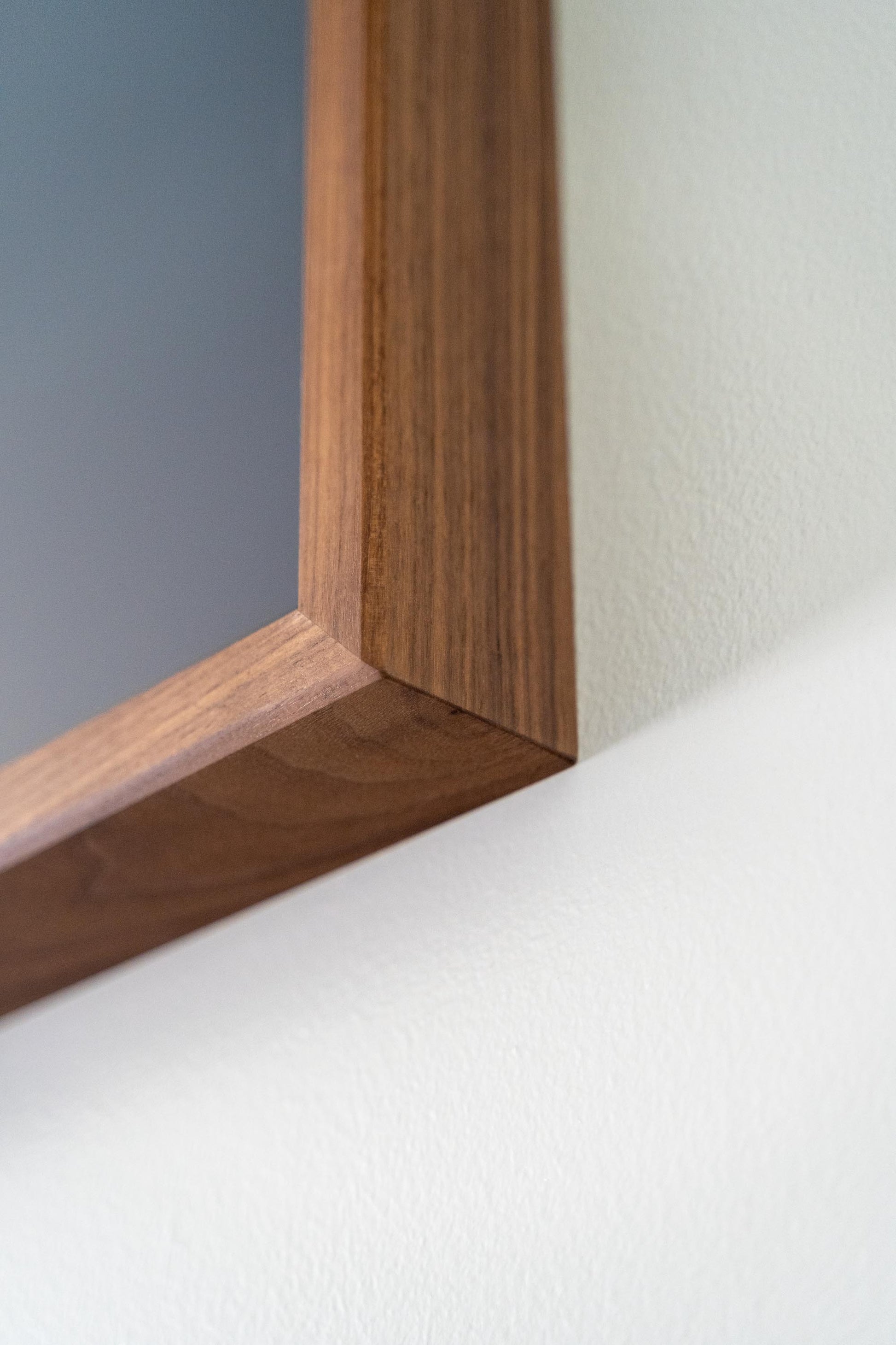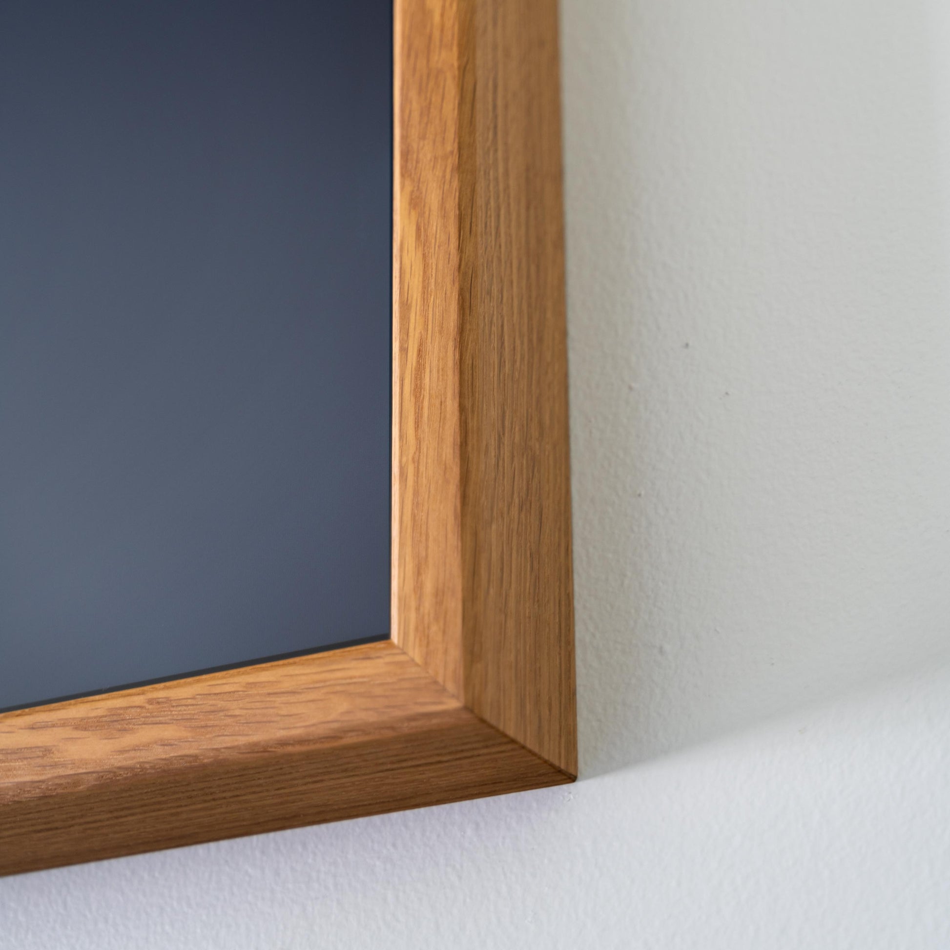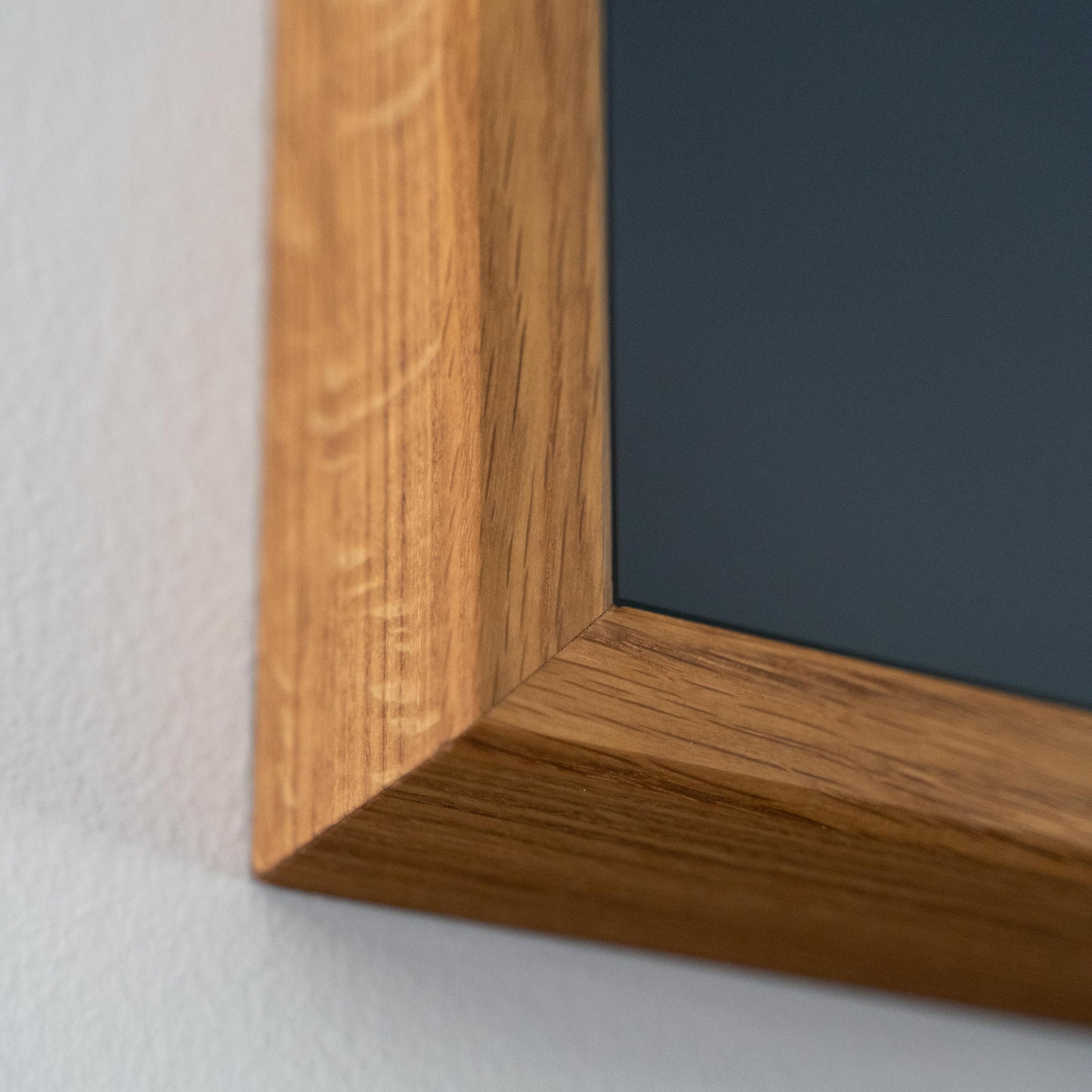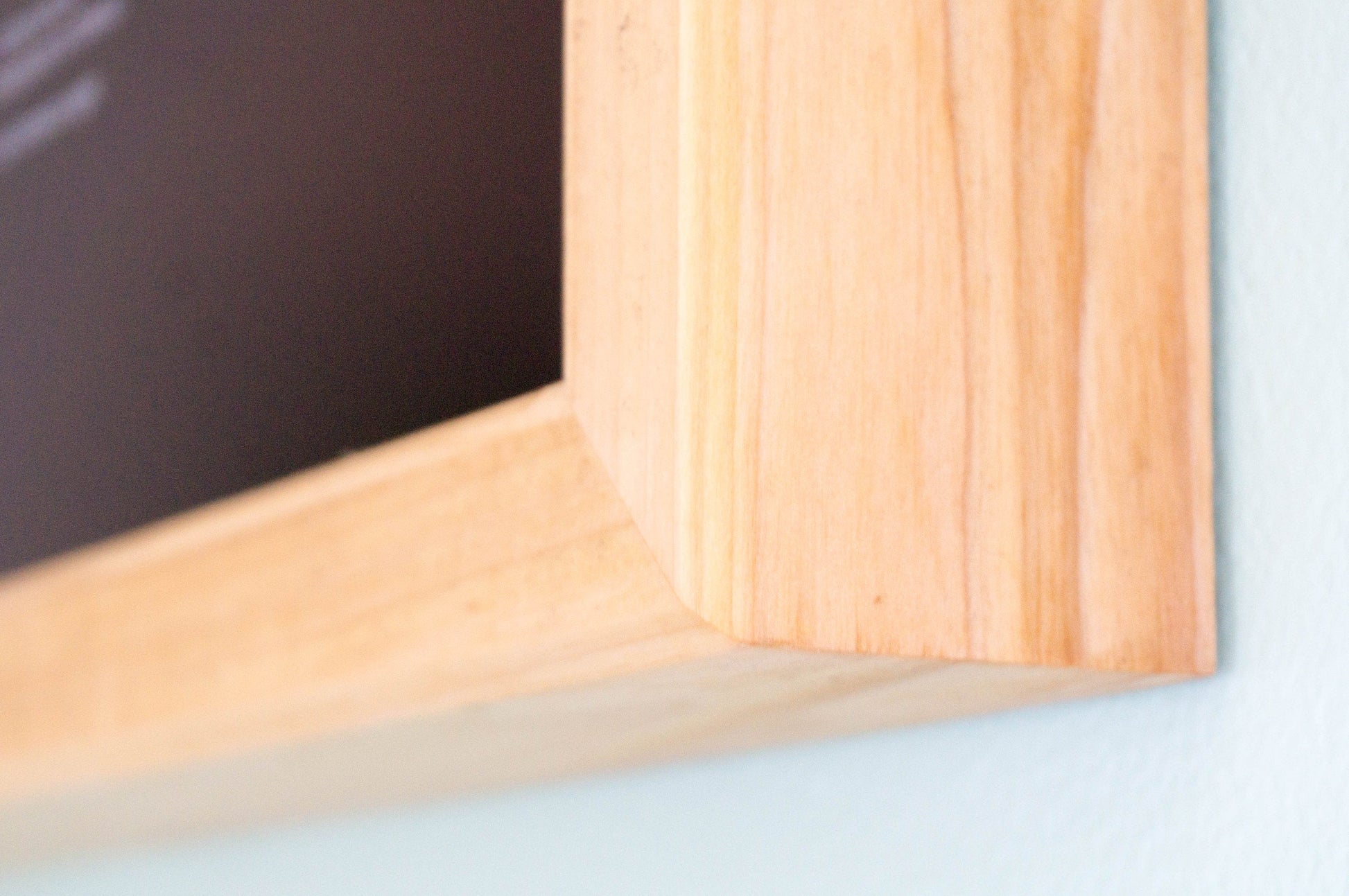 Constructed from solid walnut, oak, or maple with mitered corners and chamfered edges for a modern touch. Outside dimensions (including frame): 23” x 14” x 2.25”. Matte finish with a food safe oil/wax blend finish. -